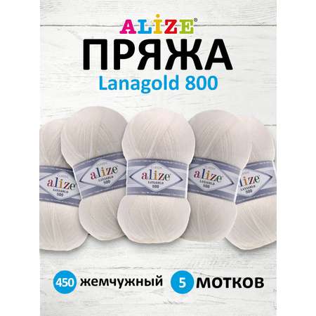 Пряжа Alize полушерстяная Lanagold 800 100 гр 730 м 5 мотков 450 жемчужный