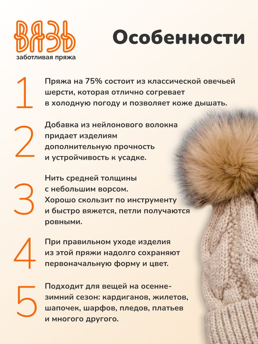 Цена на Пряжа ВЯЗЬ Шерстяная для повседневной одежды 100 гр 165 м 3 мотка 13 светло-серый - 510 ₽.