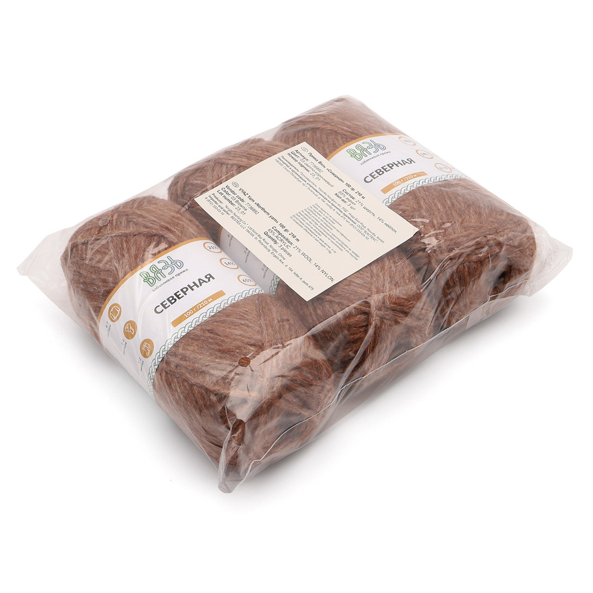 Цена на Пряжа ВЯЗЬ для вязания Северная универсальная 100 гр 210 м 3 мотка 03 светло-коричневый - 573 ₽.