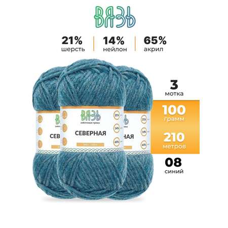 Пряжа ВЯЗЬ для вязания Северная универсальная 100 гр 210 м 3 мотка 08 синий