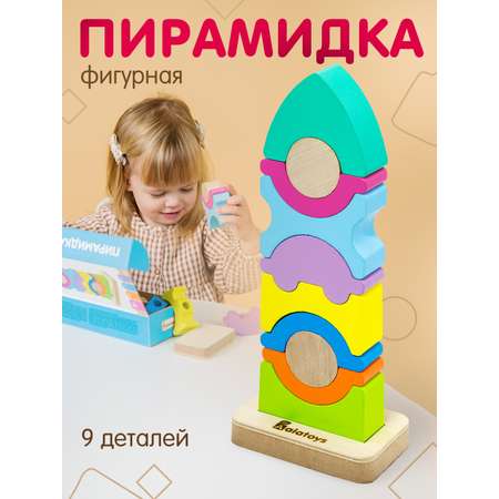Пирамидка деревянная "БАШНЯ" Алатойс развивающая обучающая Монтессори (10 фигурок)