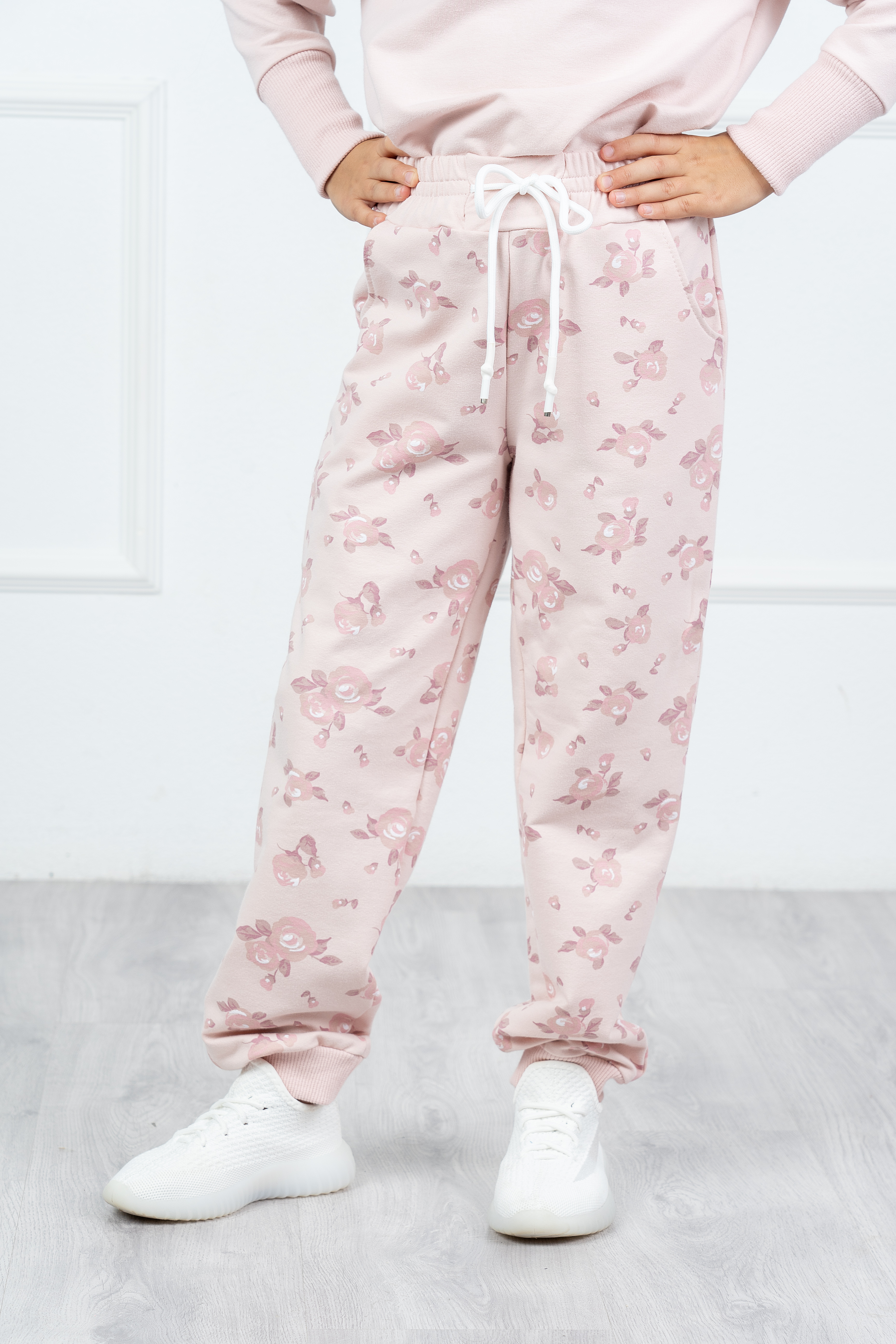 Брюки для девочки от бренда 5+, выполнены из высококачественного трикотажного полотна футер. Благодаря высокому содержанию хлопка штаны для девочки прекрасно пропускают воздух, комфортны в носке, а лайкра в составе делает их более износостойкими, они не выцветают, мало мнутся и долговечны в использовании. Модель детских брюк на широком поясе-резинке с декоративным шнурком, а функциональности изделию добавляют боковые карманы. Брюки для девочки выполнены в нескольких расцветках от нежных до ярких, а так же дополнены лаконичным нежным цветочным принтом. Они отлично сочетаются с джемперами для девочки от нашего бренда, можно выбрать однотонный или комплиментарной расцветки. Широкий размерный ряд позволит подобрать изделие на любой тип фигуры юной модницы.