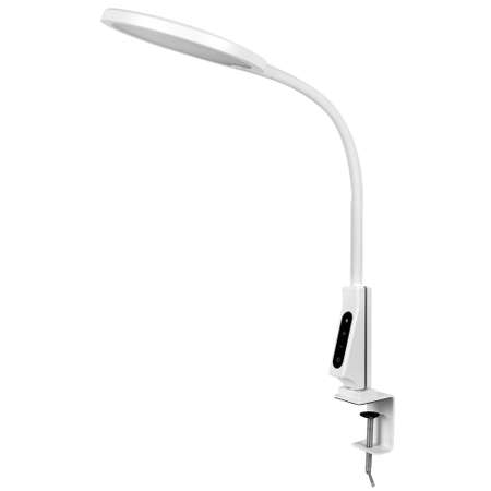 Светодиодный настольный светильник на струбцине Camelion KD-837 может использоваться в качестве источника местного освещения как в домашних помещениях, так в офисных и учебных учреждениях. Мощность 7Вт, яркость 450 лм, с высоким индексом цветопередачи ( Ra > 85). Светильник имеет пять уровней регулировки яркости и пять режимов цветовой температуры (от 3000К до 6000К). Сенсорная панель управления световыми режимами находится на нижней части стойки. Светильник имеет USB-разъём 5В, 1А. Гибкая металлическая стойка имеет силиконовое покрытие. Мощная металлическая струбцина надежно фиксирует светильник на любой поверхности толщиной до 6,5 см. Пластиковый плафон имеет форму диска диаметром 16 см. Максимальная высота плафона над уровнем стола в рабочем положении ~ 42 см. Длина провода питания – 150 см.Характеристики