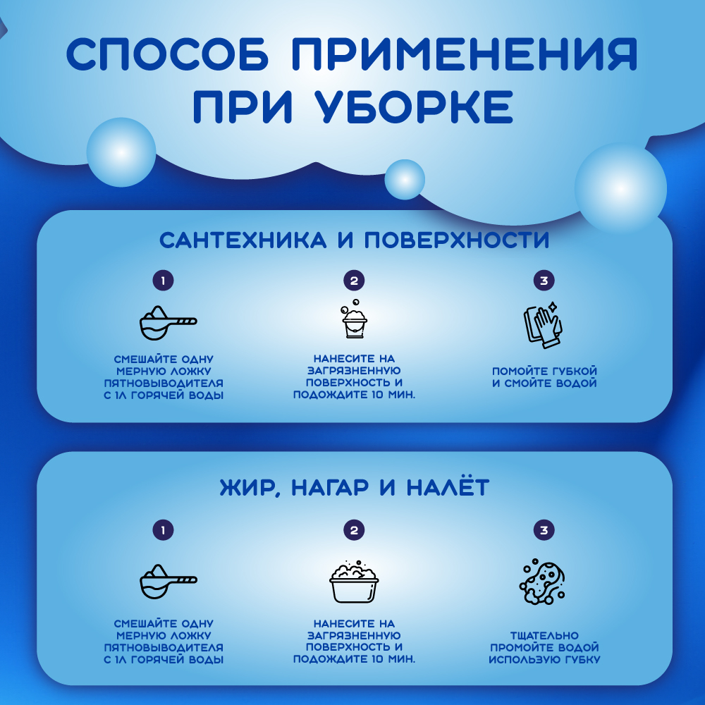 | Назначение: | для детских вещей, для удаления плесени, для белого, для цветного, для игрушек, для кафеля, для ковров, для мебели, для пола, для посудомоечных машин, для посуды, для поверхностей и помещений, универсальное |