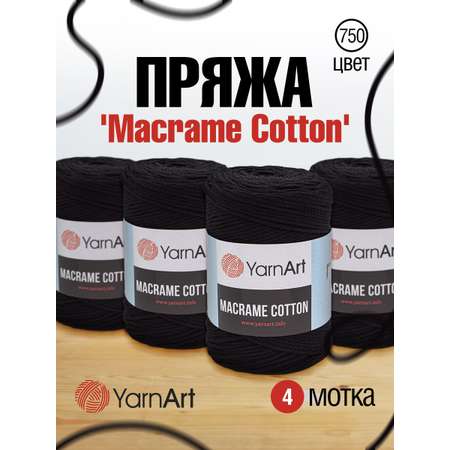 Пряжа YarnArt Macrame Cotton в виде шнура 250 г 225 м 750 черный 4 мотка