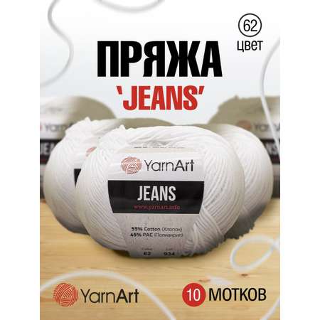 Пряжа YarnArt Jeans универсальная 50 г 160 м 62 белоснежно-белый, 10 мотков