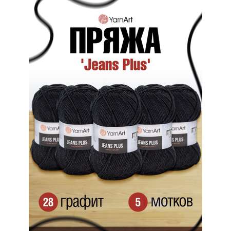 Пряжа YarnArt Jeans Plus объемная летняя 100 г 160 м 28 графит 5 мотков