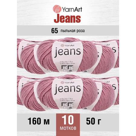 Пряжа YarnArt Jeans универсальная 50 г 160 м 65 пыльная роза, 10 мотков
