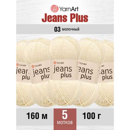 Пряжа YarnArt Jeans Plus объемная летняя 100 г 160 м 03 молочный 5 мотков