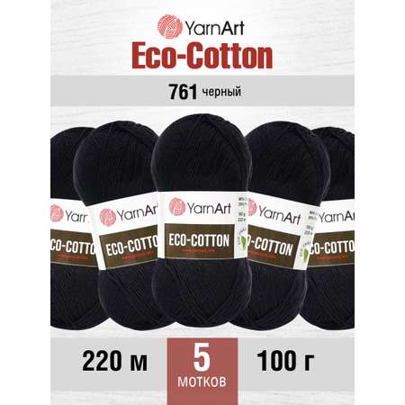 Цена на Пряжа YarnArt Eco Cotton комфортная для летних вещей 100 г 220 м 761 черный 5 мотков - 677 ₽.