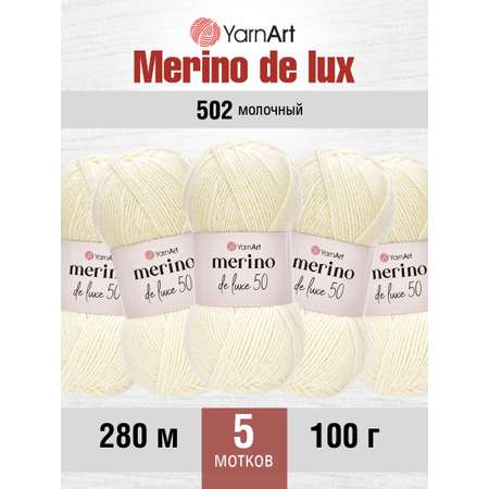 Пряжа YarnArt Merino de Lux полушерстяная 100 г 280 м 502 молочный 5 мотков