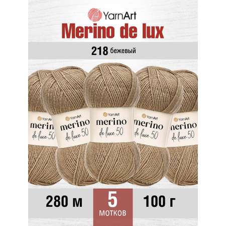 Цена на Пряжа YarnArt Merino de Lux полушерстяная 100 г 280 м 218 бежевый 5 мотков - 1217 ₽.
