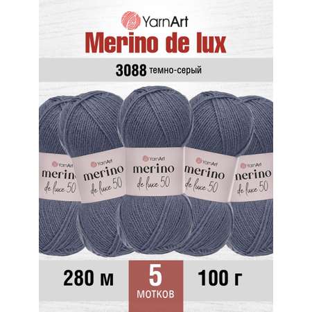 Пряжа YarnArt Merino de Lux полушерстяная 100 г 280 м 3088 темно-серый 5 мотков