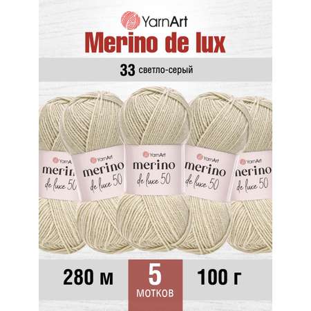 Пряжа YarnArt Merino de Lux полушерстяная 100 г 280 м 33 светло-серый 5 мотков