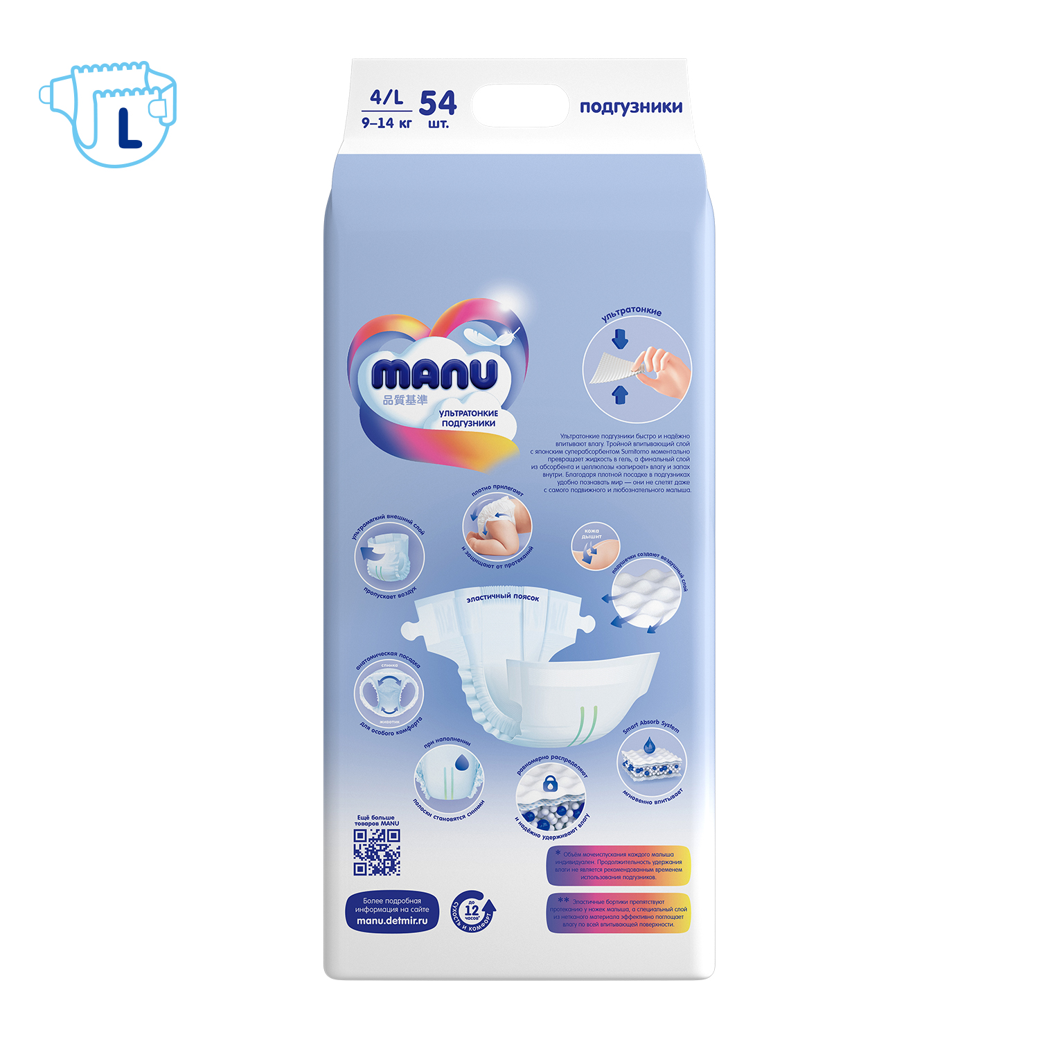 Подгузники MANU ультратонкие L 9-14кг 54шт