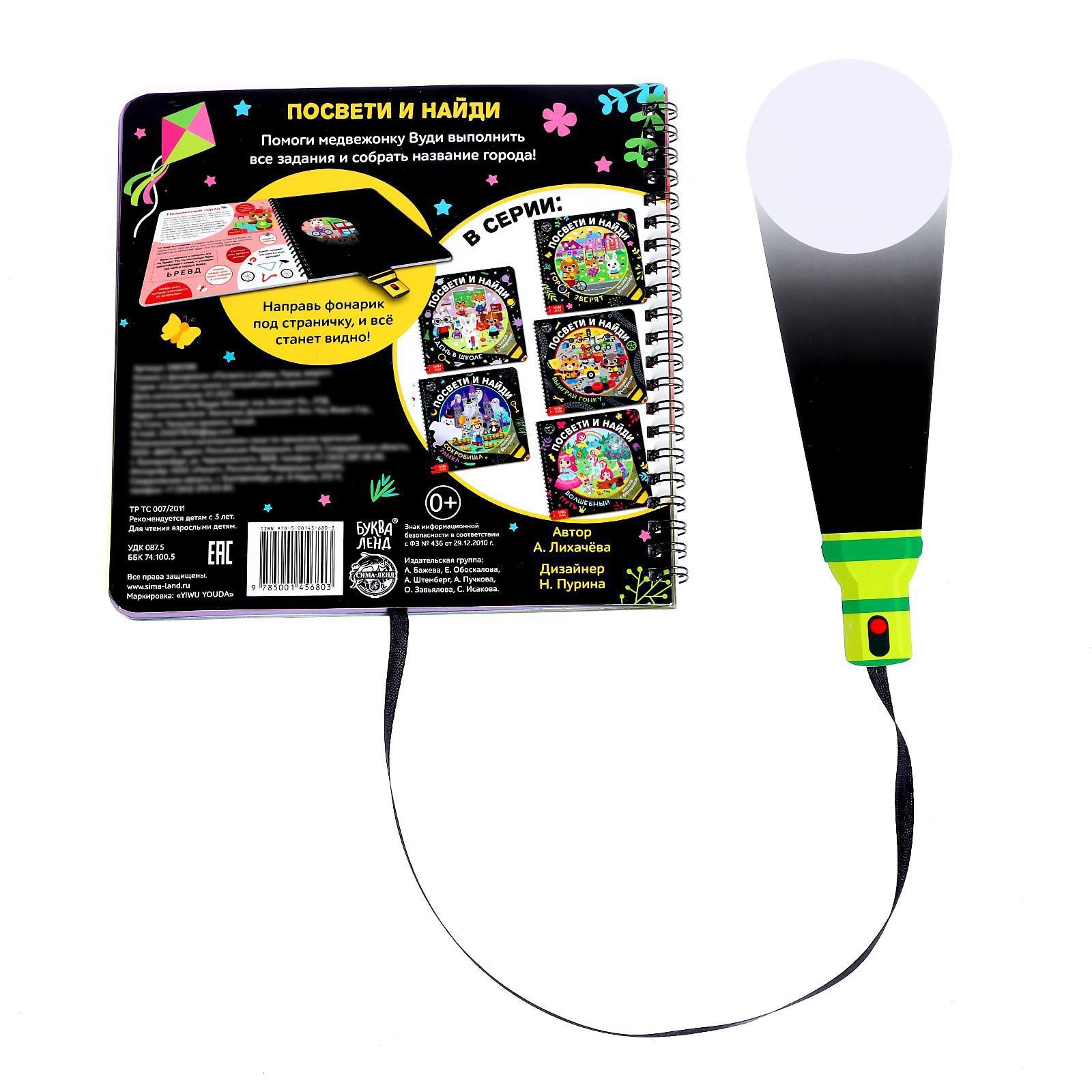 Цена на Книжка Буква-ленд с фонариком «Посвети и найди Город зверят» - 479 ₽.
