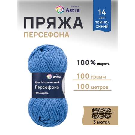 Цена на Пряжа Astra Premium Персефона шерстяная 100 г 100 м 14 темно-синий 3 мотка - 621 ₽.