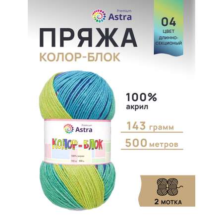 Пряжа Astra Premium Колор-блок Color-block акриловая 143 г 500 м 04 длинно-секционный 2 мотка