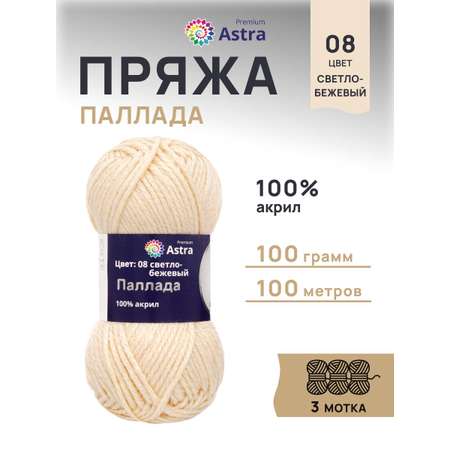 Пряжа Astra Premium Паллада акриловая 100 г 100 м 08 светло-бежевый 3 мотка
