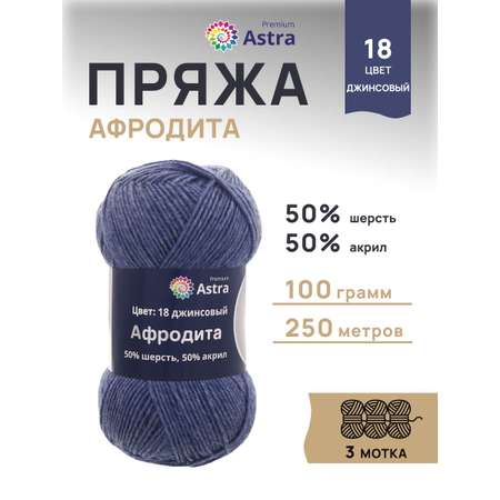 Цена на Пряжа Astra Premium Афродита полушерстяная 100 г 250 м 01 18 джинсовый 3 мотка - 534 ₽.