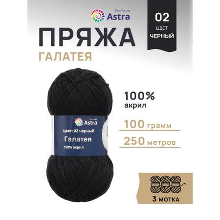 Пряжа Astra Premium Галатея акриловая 100 г 250 м 02 черный 3 мотка