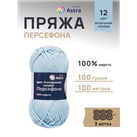 Пряжа Astra Premium Персефона шерстяная 100 г 100 м 12 воздушный голубой 3 мотка