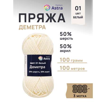 Пряжа Astra Premium Деметра полушерстяная 100 г 100 м 01 белый 3 мотка