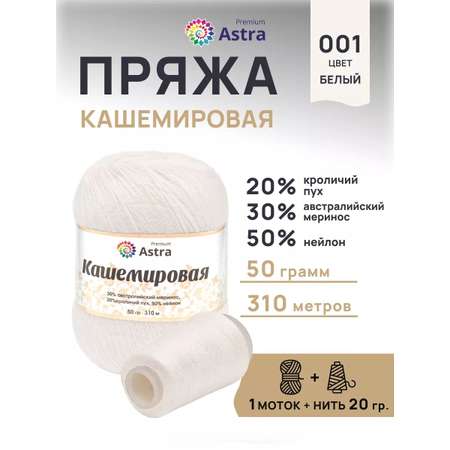Цена на Пряжа Astra Premium Кашемировая Cashmere полушерстяная 50 г 310 м 001 белый 1 моток - 356 ₽.