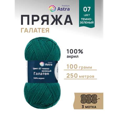 Цена на Пряжа Astra Premium Галатея акриловая 100 г 250 м 07 темно-зеленый 3 мотка - 699 ₽.