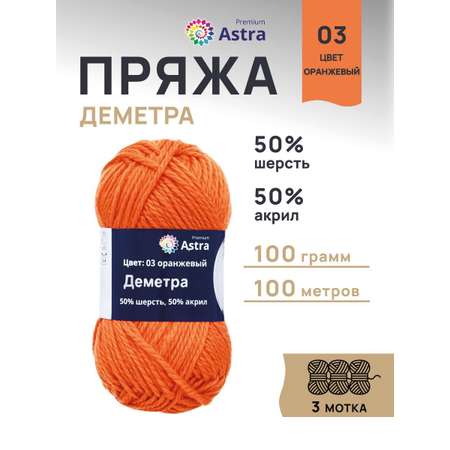 Пряжа Astra Premium Деметра полушерстяная 100 г 100 м 03 оранжевый 3 мотка