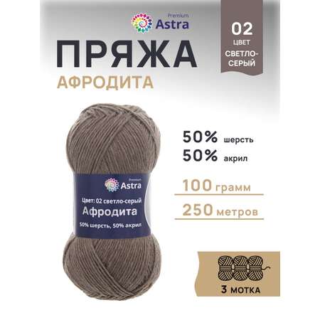 Цена на Пряжа Astra Premium Афродита полушерстяная 100 г 250 м 01 02 светло-серый 3 мотка - 534 ₽.