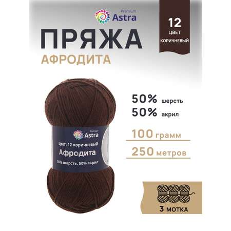 Цена на Пряжа Astra Premium Афродита полушерстяная 100 г 250 м 01 12 коричневый 3 мотка - 534 ₽.