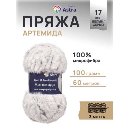 Цена на Пряжа Astra Premium Артемида с густым пушистым ворсом 100 г 60 м 17 белый/серый 3 мотка - 1047 ₽.
