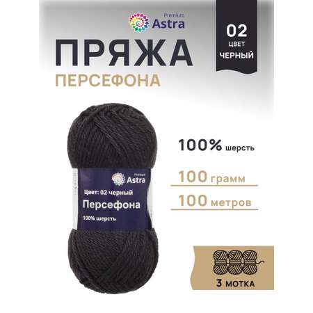 Цена на Пряжа Astra Premium Персефона шерстяная 100 г 100 м 02 черный 3 мотка - 621 ₽.