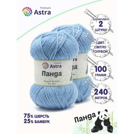 Пряжа Astra Premium Панда Panda шерсть бамбук 100 г 240 м 515 светло - голубой 2 мотка