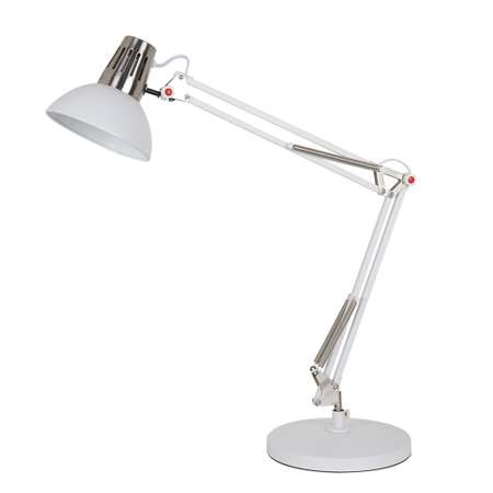 Светильники настольные для использования с лампами накаливания предназначены для освещения индивидуального рабочего пространства на письменном столе. Camelion KD-431A Berlin С71 белый+хром, размер 550х205х745мм, источник света - ЛОН, тип лампы - 40/A/E27, патрон - E27, мощность 40Вт, ~230 В, 50 Гц. Фактурная бархатистая окраскаЦены в интернет-магазине могут отличаться от розничных магазинов.