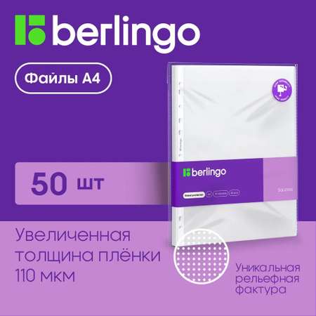 Папка-вкладыш BERLINGO с перфорацией Squares А4 110мкм рельефная текстура матовая в пакете 50 шт