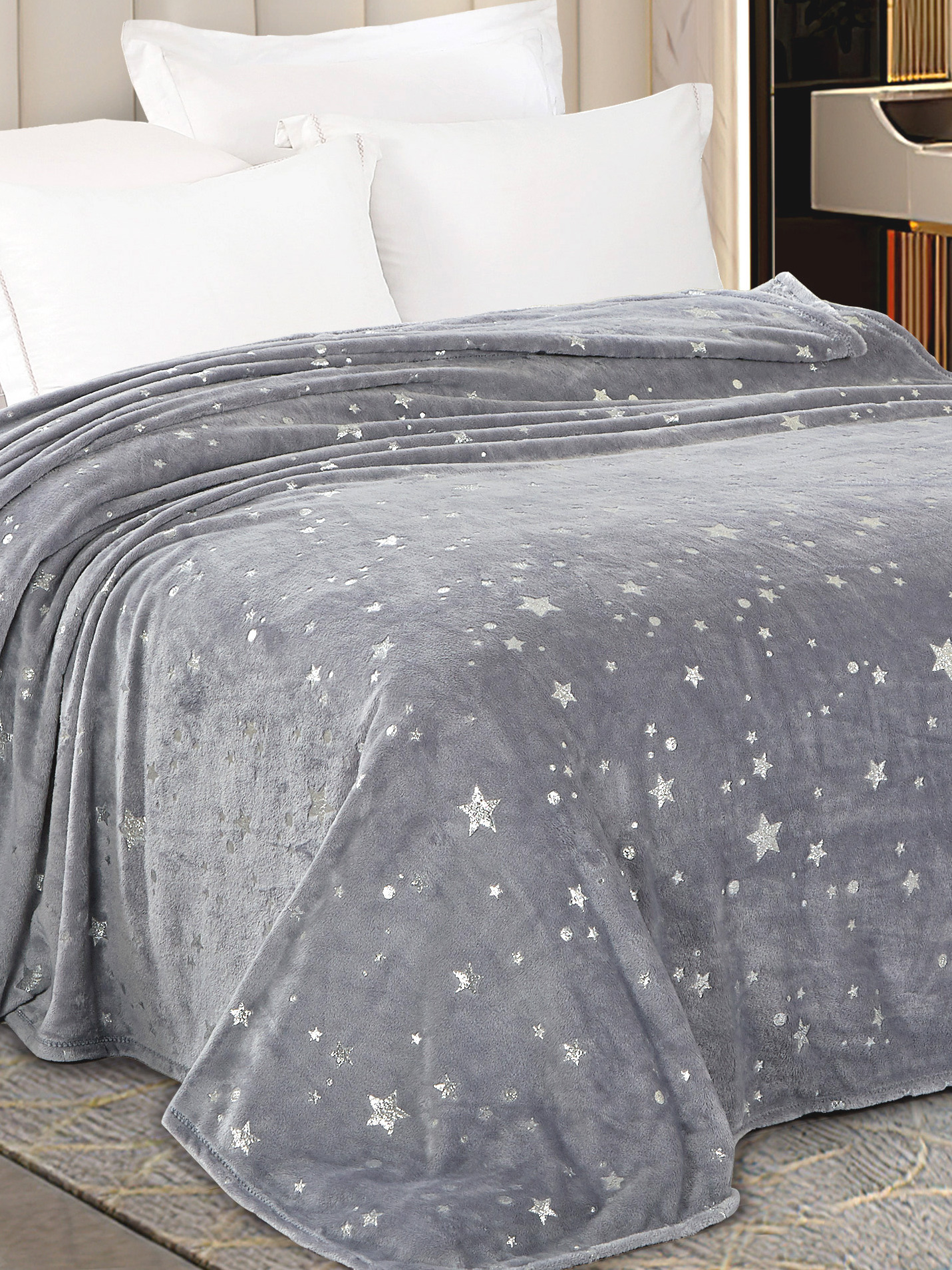Плед-покрывало PAVLine трикотажное ворсовое размер 150х200 цвет Звезды на сером