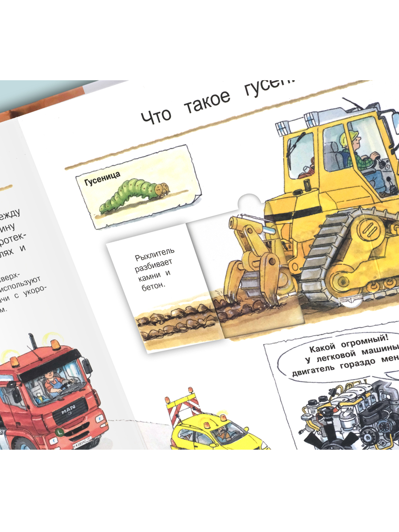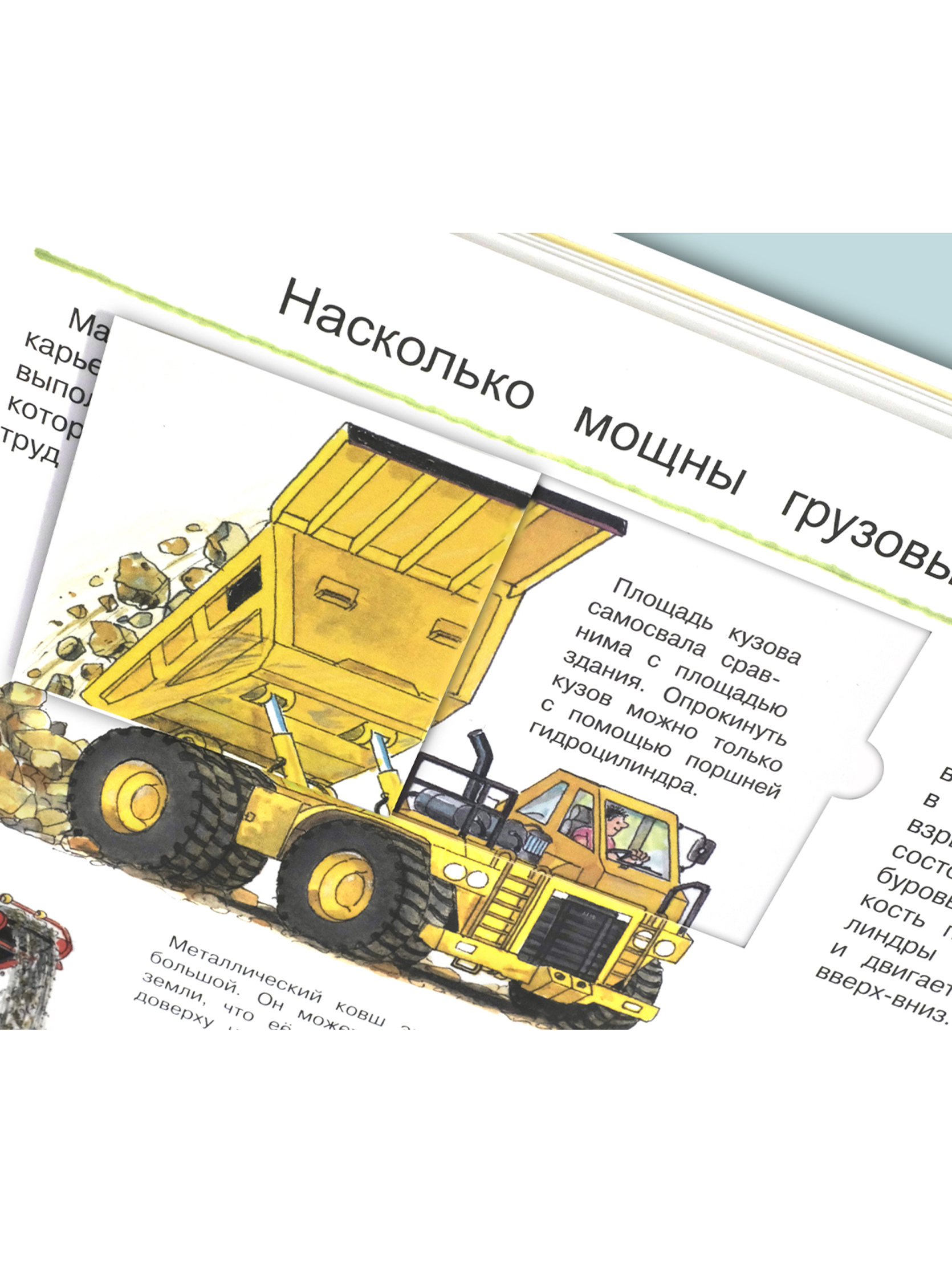 Иллюстрированная энциклопедия «Что? Почему? Зачем? Всё о грузовиках, экскаваторах и тракторах», выпущенная в серии «Для почемучек» издательства «Омега», расскажет много интересного о самых больших и мощных машинах. Издание можно использовать в качестве оригинального учебного пособия для детей младшего школьного возраста, которое непременно заинтересует ребенка и покорит сердце взрослого, поможет превратить процесс получения новых знаний в интересное и увлекательное занятие. Яркая и привлекательная книга увеличенного формата напечатана на высококачественном ламинированном картоне повышенной прочности с закругленными краями страниц. Каждый книжный разворот энциклопедии насыщен массой интереснейшей информации, красочно и занимательно описывающей различные виды грузового транспорта и мощной строительной техники. Здесь можно найти простые и понятные ответы на вопросы: - Зачем нужны грузовые и специализированные машины; - Какие бывают грузовики и что должны уметь их водители; - Насколько мощны грузовые машины и как они передвигаются; - Как устроен трактор и как им управлять; - Что такое гусеничный трактор и как работает стрела экскаватора; - Где применяются машины спасателей; - Почему не падает строительный кран? Детальные картинки можно рассматривать часами, замечая и открывая для себя новые удивительные факты, а многочисленные окошки и клапаны с дополнительной информацией дадут пояснения и исчерпывающие ответы на вопросы ребёнка и превратят чтение в увлекательную игру, разовьют внимание и любознательность.