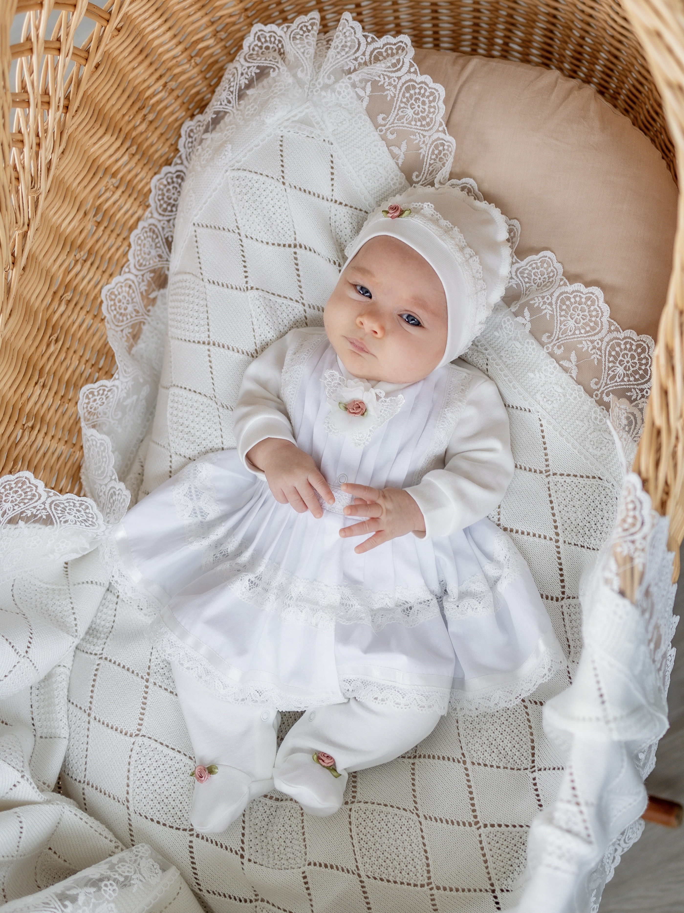 - Очень внимательно и долго выбирала комплект на выписку, платье!!! Все получила, просто красота неописуемая, поразила в этом наборе нежнятина и вышитые наверное крючком на платье рюшечки!!! Очень понравилось! Благодарю Вас!!! Также заказывала одеялко , все невероятно красивейшее и качественное!!!