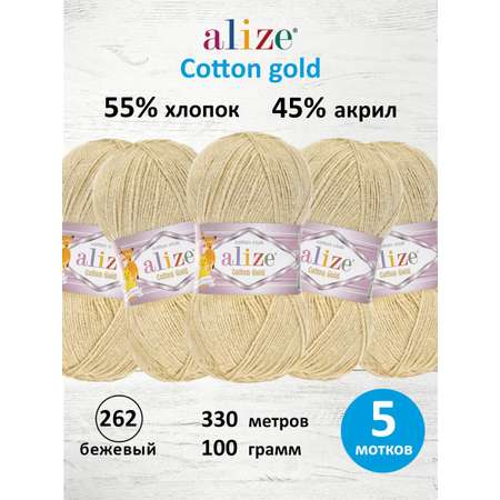 Цена на Пряжа Alize для теплой одежды пледов игрушек Cotton gold 100 гр 330 м 5 мотков 262 бежевый - 923 ₽.
