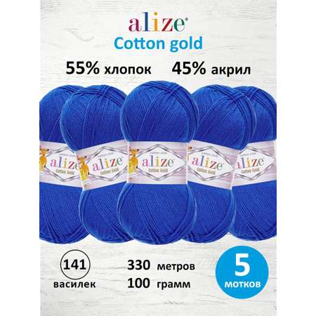 Цена на Пряжа Alize для теплой одежды пледов игрушек Cotton gold 100 гр 330 м 5 мотков 141 василек - 923 ₽.