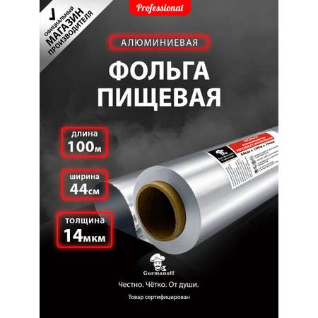 Фольга для запекания Gurmanoff 100 м х 44 cм 14 мкм профессиональная