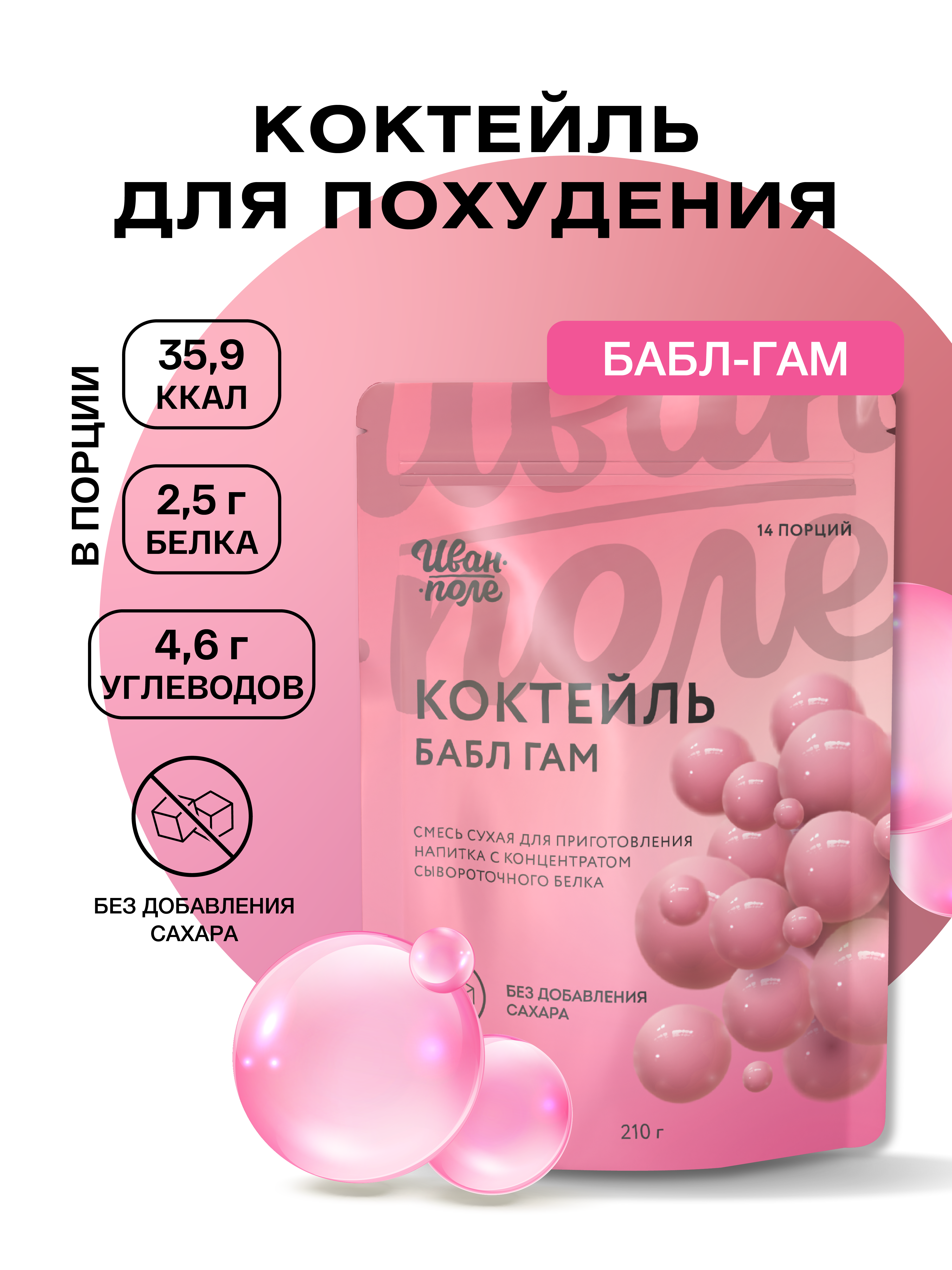 Протеин для похудения Иван-поле Бабл Гам белковый коктейль без сахара 210 г