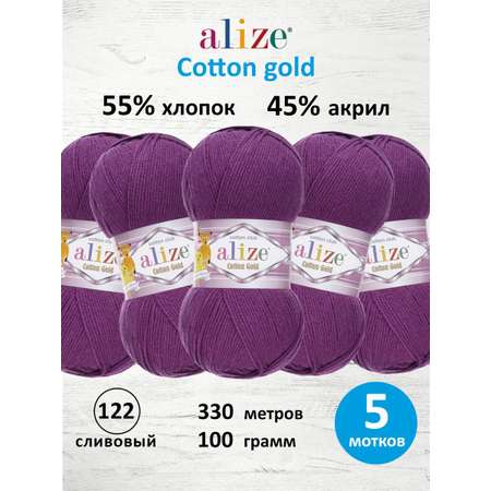 Цена на Пряжа Alize для теплой одежды пледов игрушек Cotton gold 100 гр 330 м 5 мотков 122 сливовый - 923 ₽.