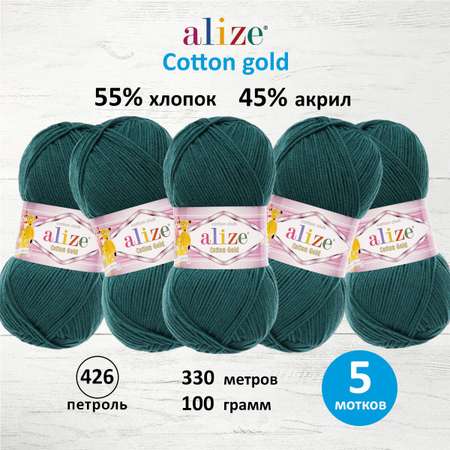 Пряжа Alize для теплой одежды пледов игрушек Cotton gold 100 гр 330 м 5 мотков 426 петроль