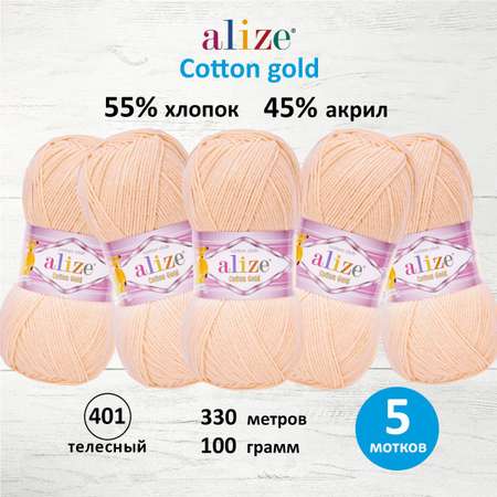 Цена на Пряжа Alize для теплой одежды пледов игрушек Cotton gold 100 гр 330 м 5 мотков 401 телесный - 923 ₽.