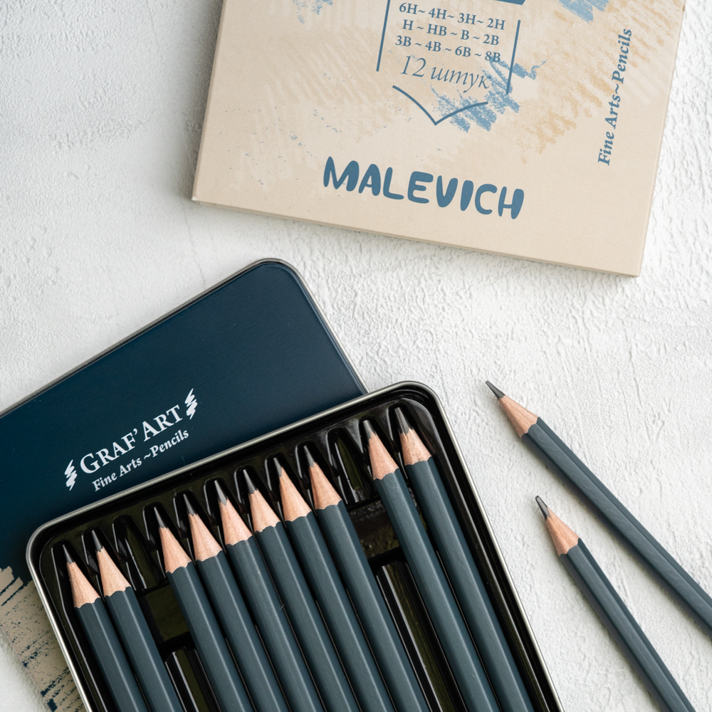 Художественные чернографитные карандаши простые Малевичъ Graf'Art предназначены для рисования и для школы. Набор карандашей отвечает всем требованиям, предъявляемым к профессиональной художественной продукции. Высококачественный грифель очищен от примесей за счет чего штриховка получается равномерной и четкой. Диаметр грифеля отличается в зависимости от степени мягкости карандаша. Высококачественная древесина обеспечивает легкое затачивание, корпус и грифель не крошится и остаются целыми даже при падении карандаша.
