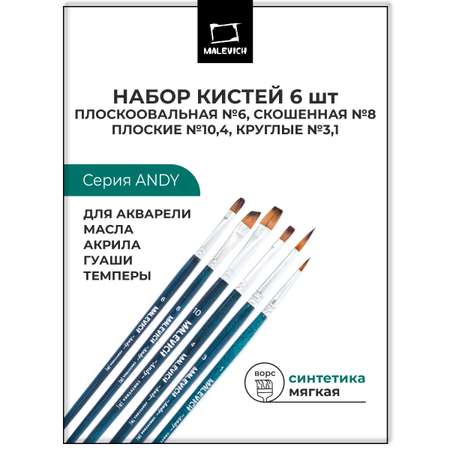 Художественные кисти Малевичъ из синтетики Энди набор 6 штук