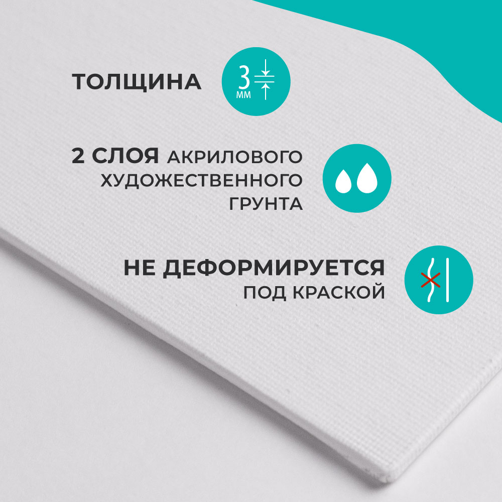 Полноценные холсты для профессиональной живописи. Представляют собой загрунтованное мелкозернистое полотно из 100% хлопка плотностью 280 г/кв. м, наклеенное на основу из прочного картона толщиной 3 мм.